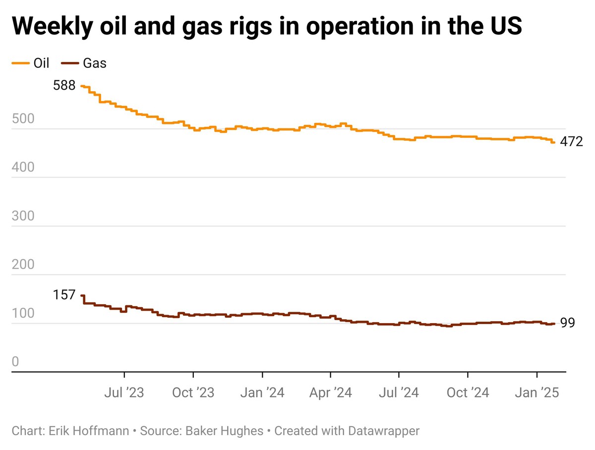 There are now fewer oil and gas rigs in operation in the US than at any time since December 2021.