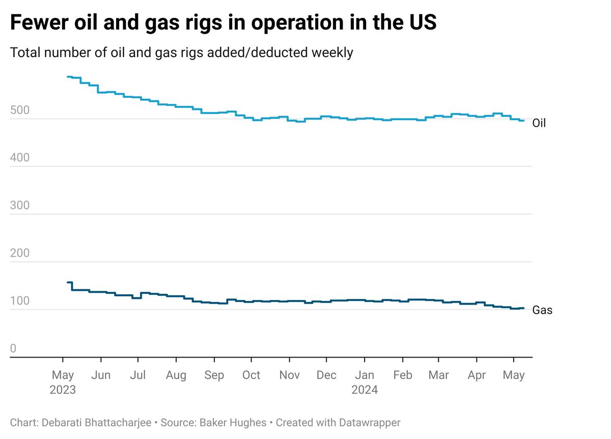 The number of rigs drilling for crude oil and natural gas by two to 603 units last week – the lowest since January 2022, according to Baker Hughes.