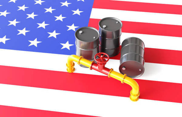 PHOTO: A depiction of oil barrels and a pipeline on the US flag. Getty Images