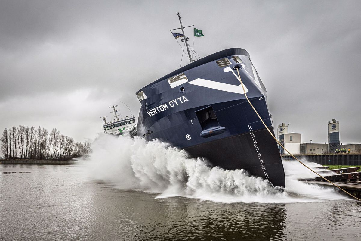 PHOTO: The Vertom Cyta being launched at Thecla Bodewes Shipyards. Vertom