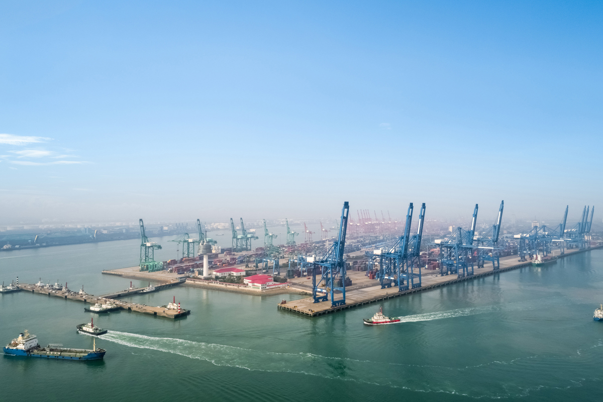 PHOTO: Aerial view of a container terminal in the port of Tianjin, China. Getty Images