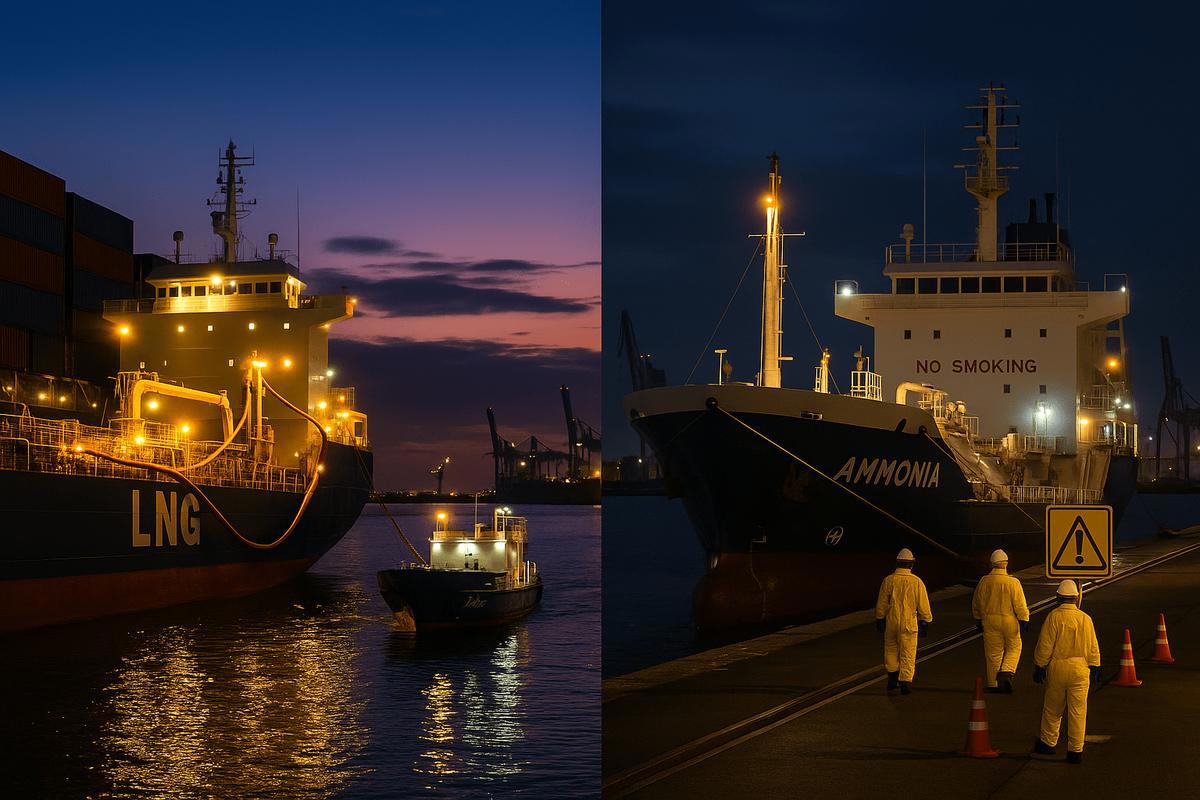 IMAGE: LNG vs ammonia bunkering. ENGINE via ChatGPT