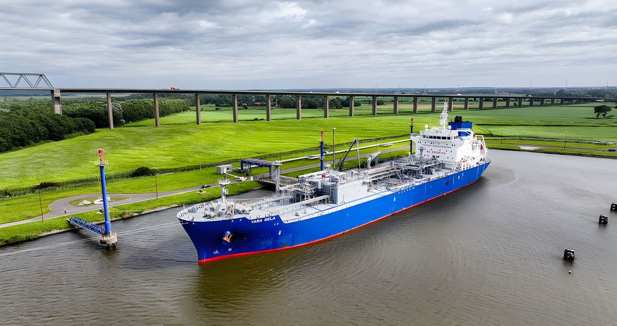 PHOTO: Tanker Yara Sela at the Brunsbüttel import terminal. Yara International