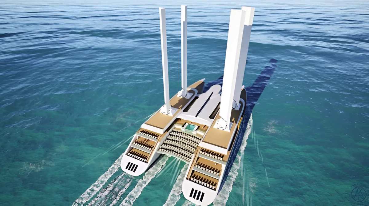 PHOTO: YSA Design’s sail-powered catamaran cruise ship concept. YSA Design